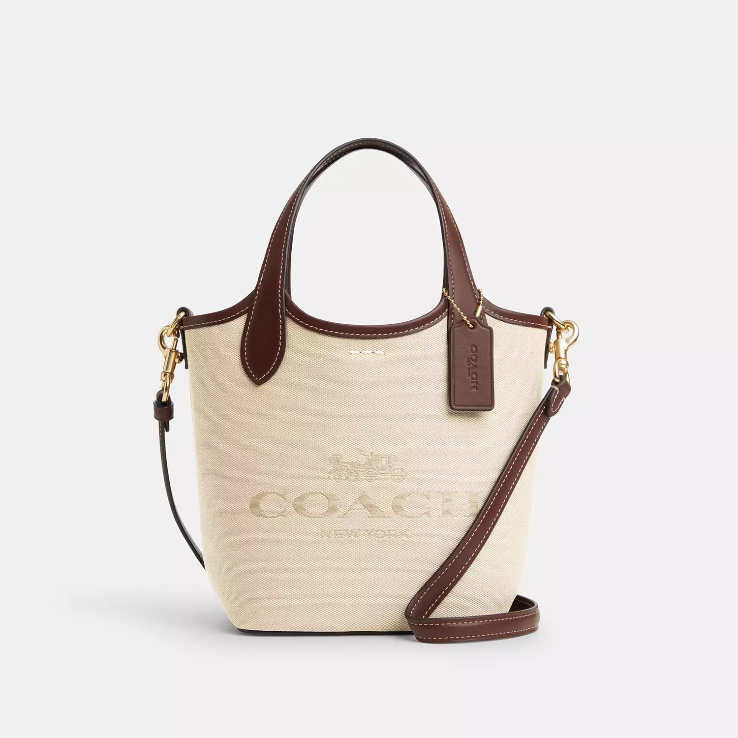 Splash. Our Hanna bag is a perfect bucket. Crafted of canvas and finished with refined calf leather, Hanna is a bucket bag designed with style and versatility in mind, with room for your wallet, phone and other essentials. This canvas shoulder bag travels well and is easily worn crossbody or carried by its handles. Its secure magnetic snap closure makes opening and closing it, well, a snap. Looking for effortlessly elegant women’s shoulder bags? Â Hanna has it all.