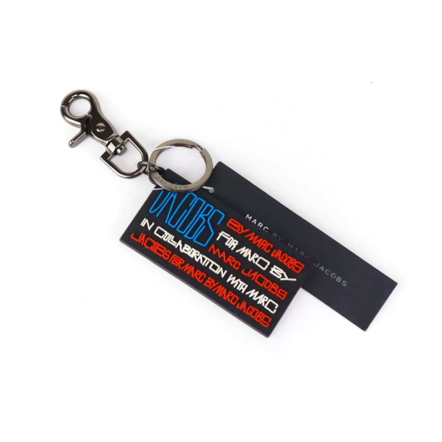 Design: The keychain features a prominent USA flag design, which is a hallmark of Marc by Marc Jacobs’ playful and stylish approach. The flag’s stars and stripes are rendered in vibrant colors, reflecting the American flag’s classic red, white, and blue