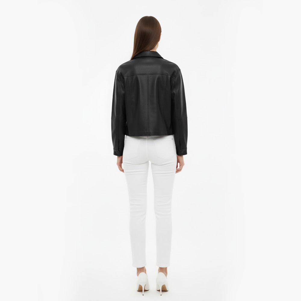 This jacket is crafted with high-quality synthetic leather that’s lightweight yet durable, ensuring comfort and style season after season.
